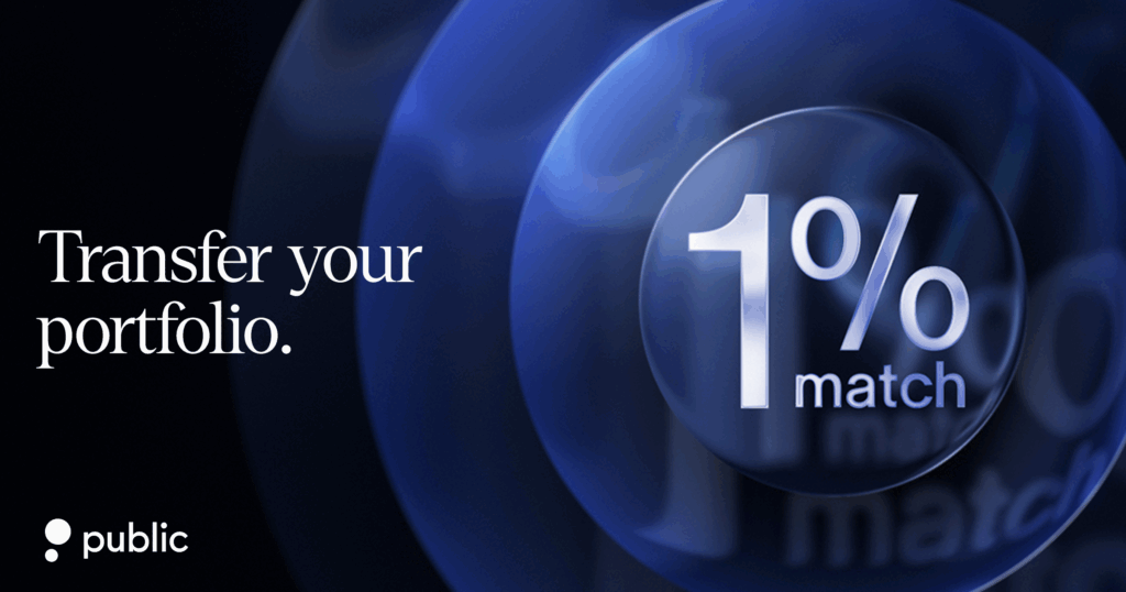 Public Bonus — Public is currently offering $500 to new customers as part of their “Public.com Brokerage 1% Unlimited Transfer Match” promotion. This bonus is available for a limited time — check the official page for the latest deadline. Transfer your brokerage or IRA account to Public and receive a 1% cash match on the total value of assets transferred — with no cap. A $50,000 transfer earns $500, a $100,000 transfer earns $1,000, and so on. Public also covers up to $100 in transfer fees from your old brokerage for transfers of $5,000+. Below, we break down exactly how to qualify, what you need to know before signing up, and whether this bonus is worth your time.
